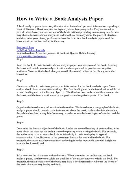 Read Online how to write a book analysis paper Doc online is a convenient and frugal way to read how to write a book analysis paper you love right from the comfort of your own home. Yes, there sites where you can get Doc "for free" but the ones listed below are clean from viruses and completely legal to use.